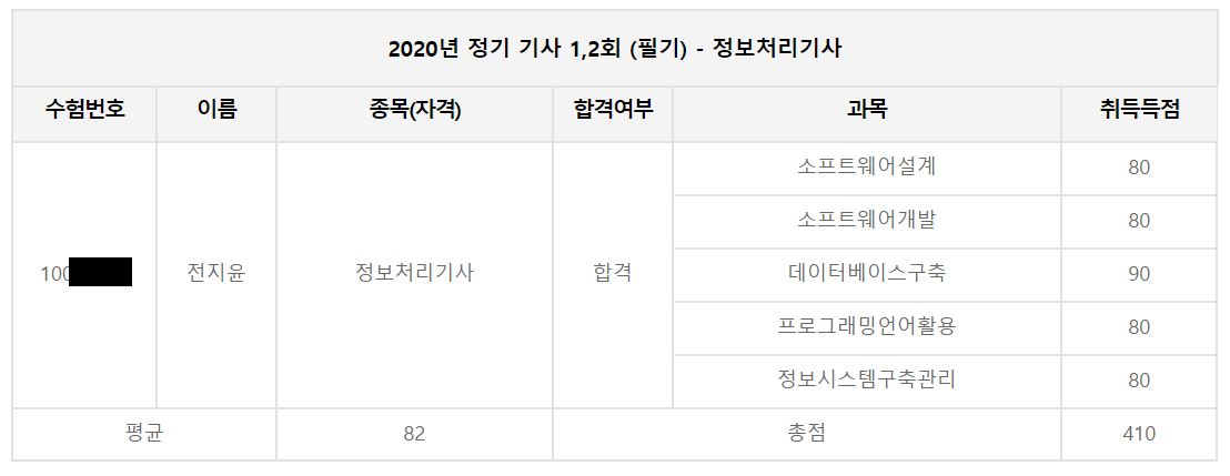 3과목을 제외한 다른과목은 80점 3과목은 90점, 평균 82점으로 안전하게 합격했어요. (전공자입니다...)