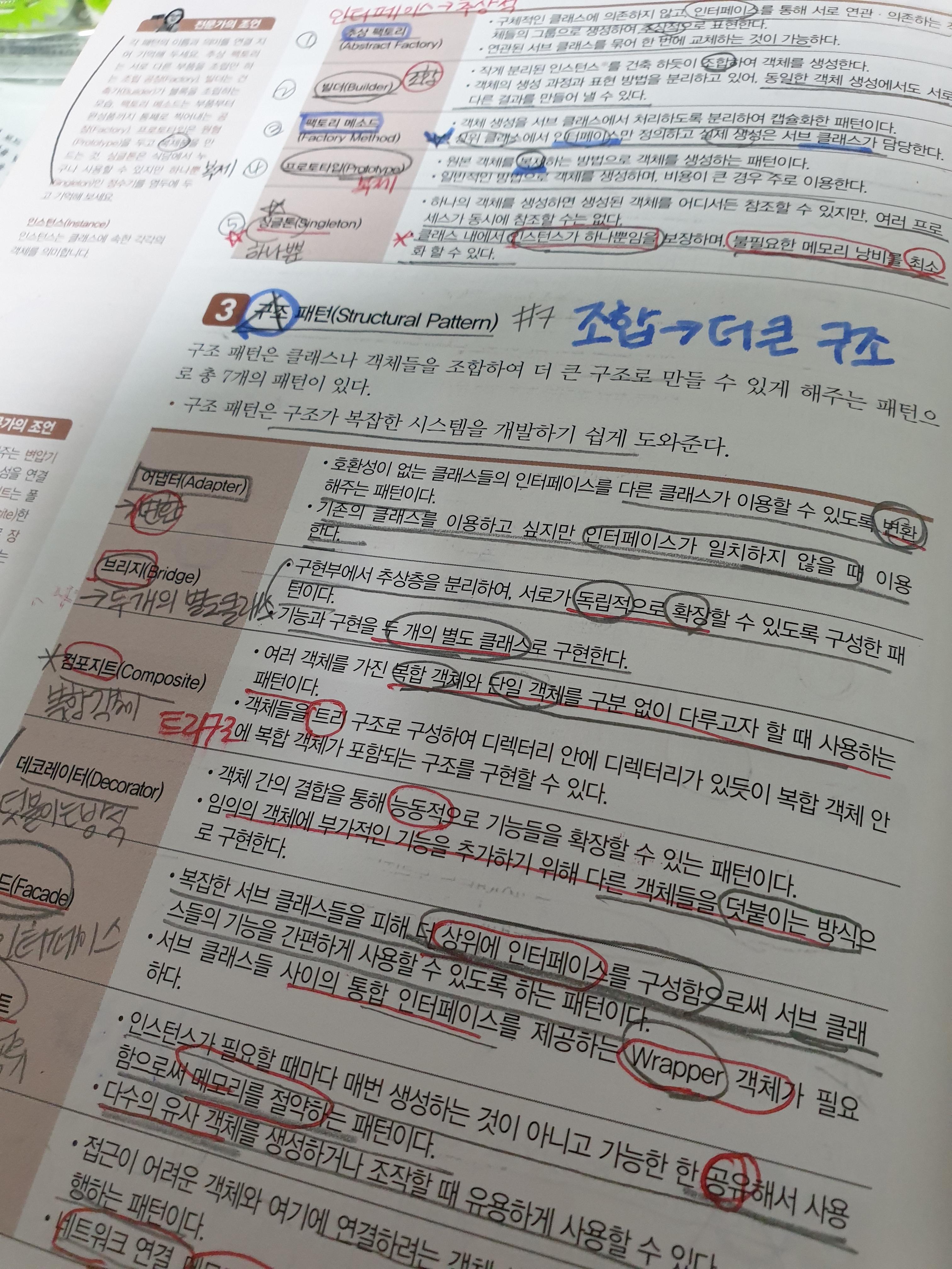 시험 직전 대기하면서 봤어요. 쓸 때는 검정색 볼펜으로만 작성하고 시험 날 아침에 빨간색 볼펜으로 한 번 더 확인하면서 공부했어요.
