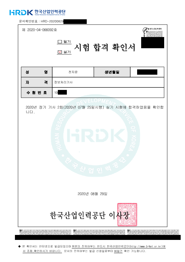 아무튼 2020년 개정 후 정처기 실기 시험에 합격했습니다.